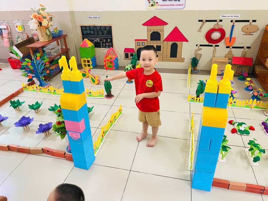 Trong góc phân vai, các “cô bán hàng”, “người nội trợ tí hon” nhanh nhẹn sắp xếp hàng hóa, tính tiền và giao tiếp với bạn bè rất tự nhiên, đáng yêu. Ở góc xây dựng, những “kiến trúc sư nhí” say sưa xếp những khối gạch để dựng lên “ngôi nhà mơ ước” hay “công viên vui chơi” của riêng mình.