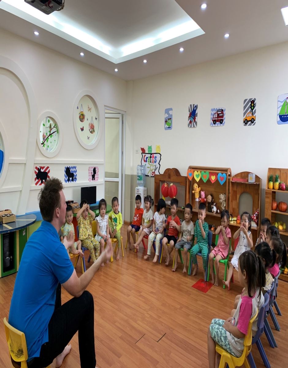Lớp Mẫu Giáo Bé C1 rất hào hứng khi được học Tiếng Anh với Thầy giáo Mathew.