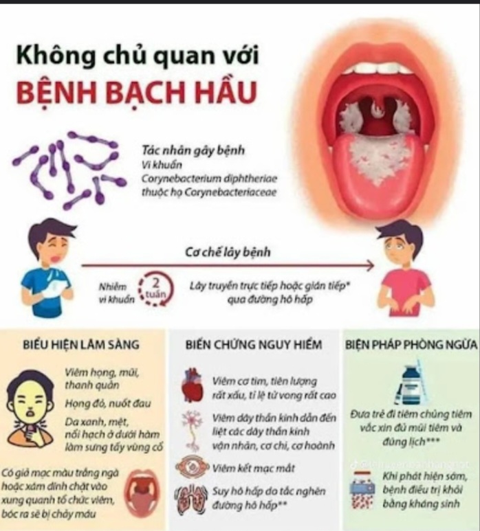 Bạch hầu là 1 bệnh nhiễm trùng nguy hiểm do vi khuẩn Corynebacterium diphtheriae gây ra, có khả năng lây lan mạnh và nhanh chóng tạo thành dịch. Đây là bệnh nhiễm khuẩn cấp tính có giả mạc ở tuyến hạnh nhân, hầu họng, thanh quản, mũi. Bệnh có thể xuất hiện ở da, các màng niêm mạc khác như kết mạc mắt hoặc bộ phận sinh dục.