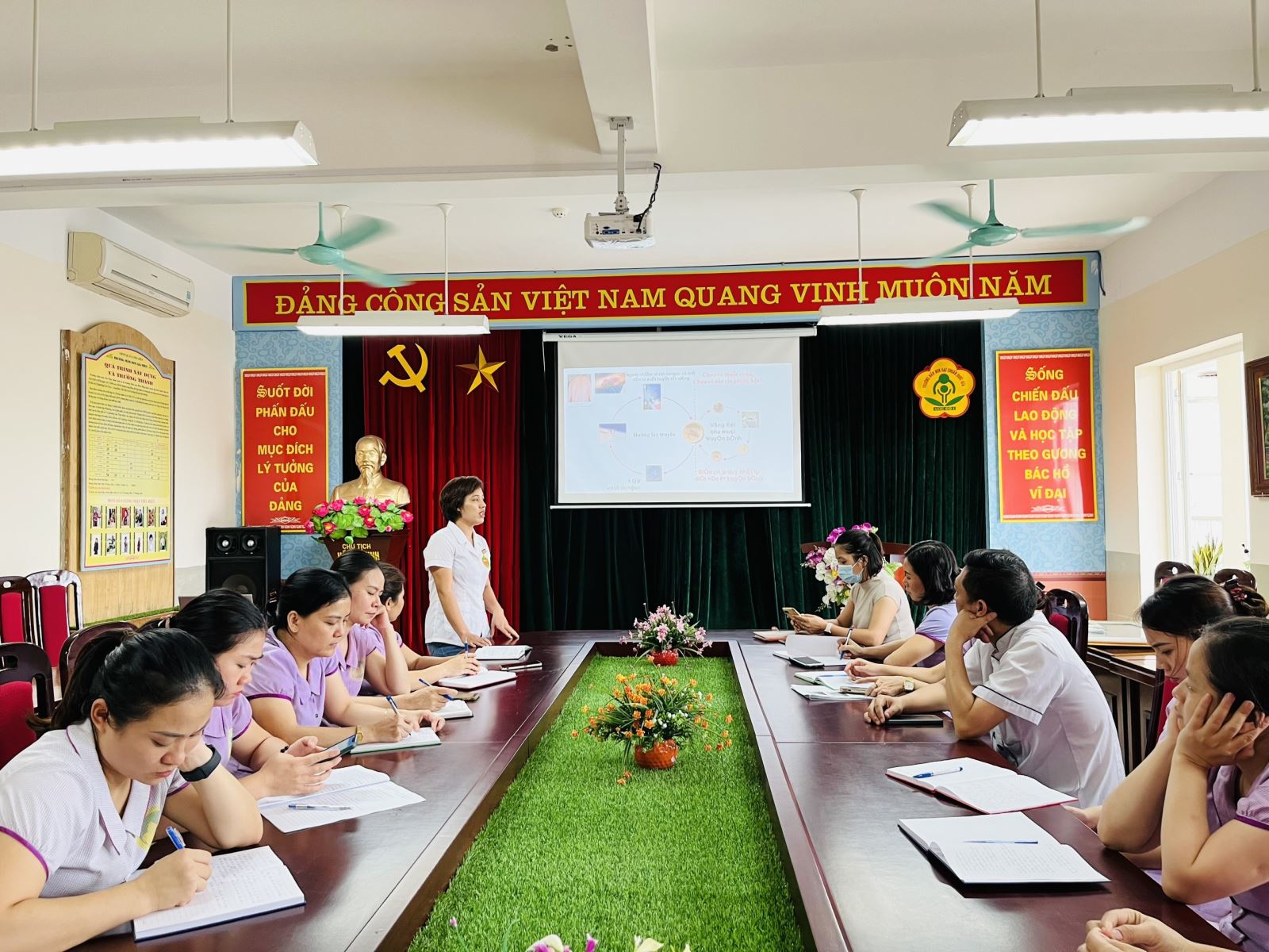 Trưa ngày 29/9/2022, Trường mầm non Gia Thụy tổ chức lớp tập huấn công tác phòng, chống sốt xuất huyết và phòng tránh tai nạn thương tích năm học 2022 – 2023 cho CBGVNV nhà trường. Tham dự lớp tập huấn có đ/c Trần Thị Luyến – Nhân viên y tế cùng các đ/c CBGVNV trong nhà trường.