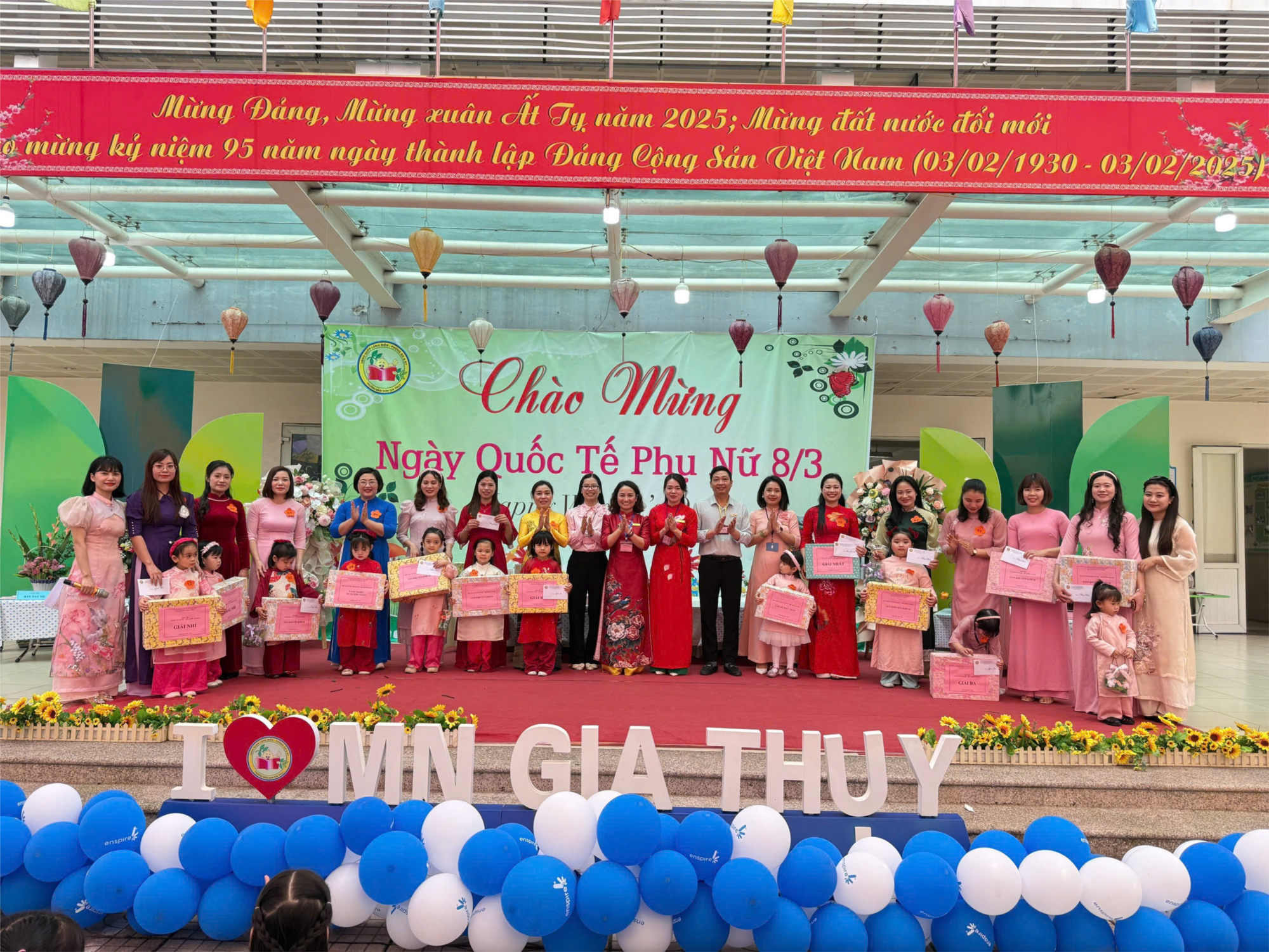 Hôm nay ngày 05 tháng 03 năm 2022, trường MN Gia Thụy đã tổ chức hội thi “ Cô duyên dáng – Bé khỏe ngoan” chào mừng ngày Quốc tế phụ nữ 8-3. Hội thi được tổ chức nhằm tôn vinh trí tuệ, tài năng, sự sáng tạo, vẻ đẹp, sự duyên dáng, cũng như khơi dậy và phát huy tinh thần trách nhiệm, ý thức của mỗi nhà giáo trong việc học tập, nâng cao trình độ hiểu biết, chuyên môn và nghiệp vụ sư phạm của các nữ giáo viên. Bên cạnh đó, hội thi còn nhằm tuyên truyền các chủ trương của Đảng, chính sách của Nhà nước, của Ngành về công tác phụ nữ, các hoạt động vì sự tiến bộ của phụ nữ; chăm lo, bồi dưỡng, nâng cao phẩm chất, trình độ, năng lực của nữ nhà giáo để góp phần thực hiện thắng lợi Nghị quyết 29 về đổi mới căn bản, toàn diện GDĐT. Ngoài ra cuộc thi cũng tạo được một sân chơi bổ ích, nâng cao chất lượng đời sống văn hóa, tinh thần, góp phần nâng cao kỹ năng sống, gắn kết việc dạy học với thực tiễn đời sống xã hội. Đến với hội thi là các cô giáo, học sinh đến từ các lớp từ nhà trẻ đến mẫu giáo lớn. Các thí sinh phải trải qua 3 phần thi: Trình diễn áo dài - Phần thi năng khiếu - Phần thi ứng xử, các thí sinh trả lời những câu hỏi do BGK đưa ra.