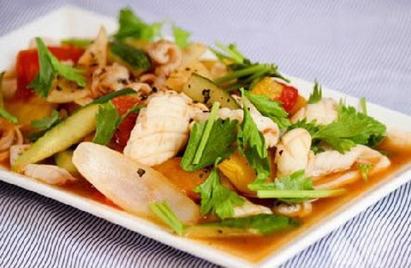 Món ăn mùa hè dưa leo xào mực
