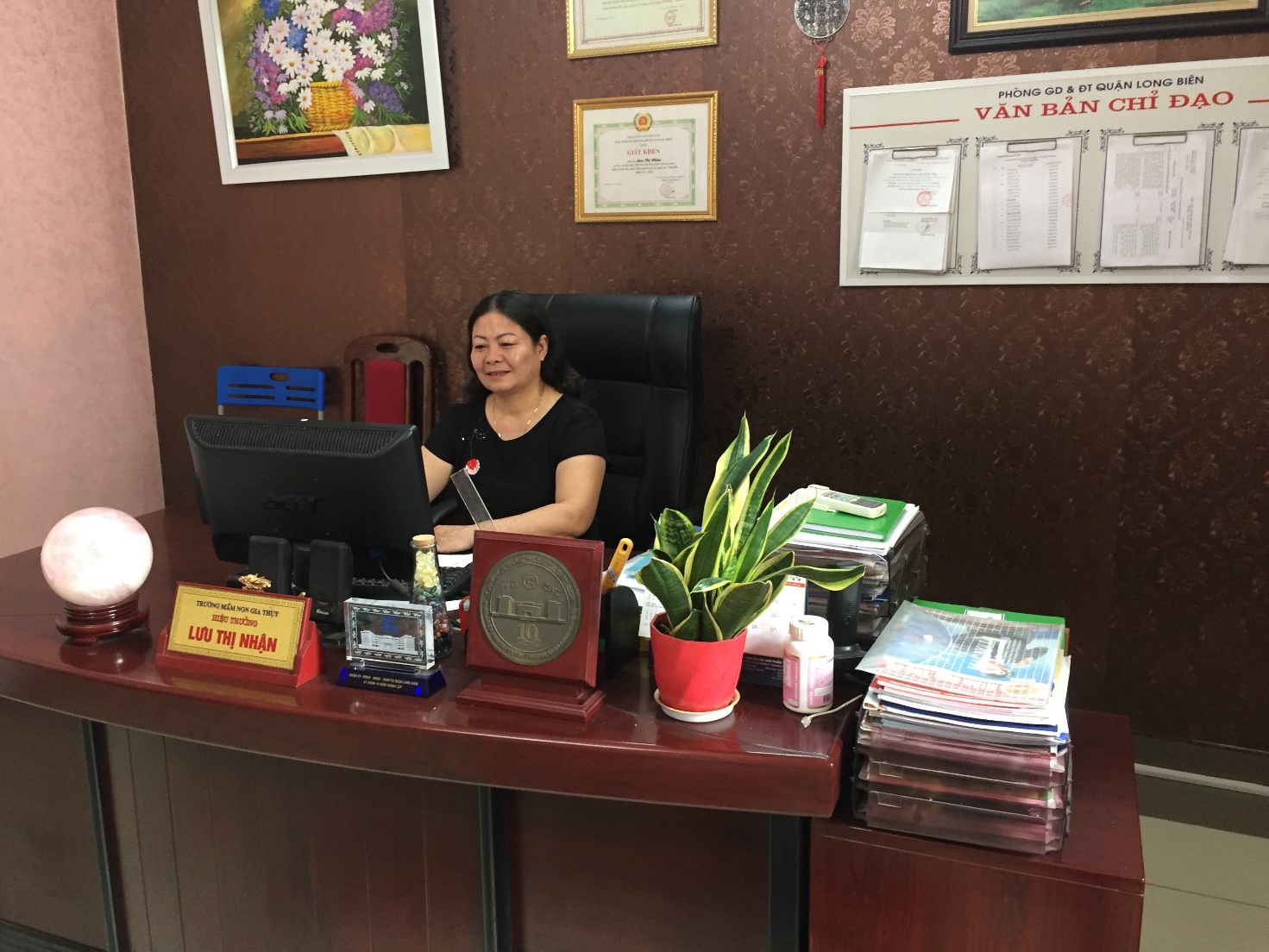 Cô giáo Lưu Thị Nhận – Hiệu trưởng trường Mầm non Gia Thụy, một cán bộ quản lý năng động, sáng tạo, luôn tận tâm với nghề. Cô đã có rất nhiều thành tích trong sự nghiệp trồng người, được bạn bè - đồng nghiệp, các bậc phụ huynh, học sinh tin tưởng và yêu mến.