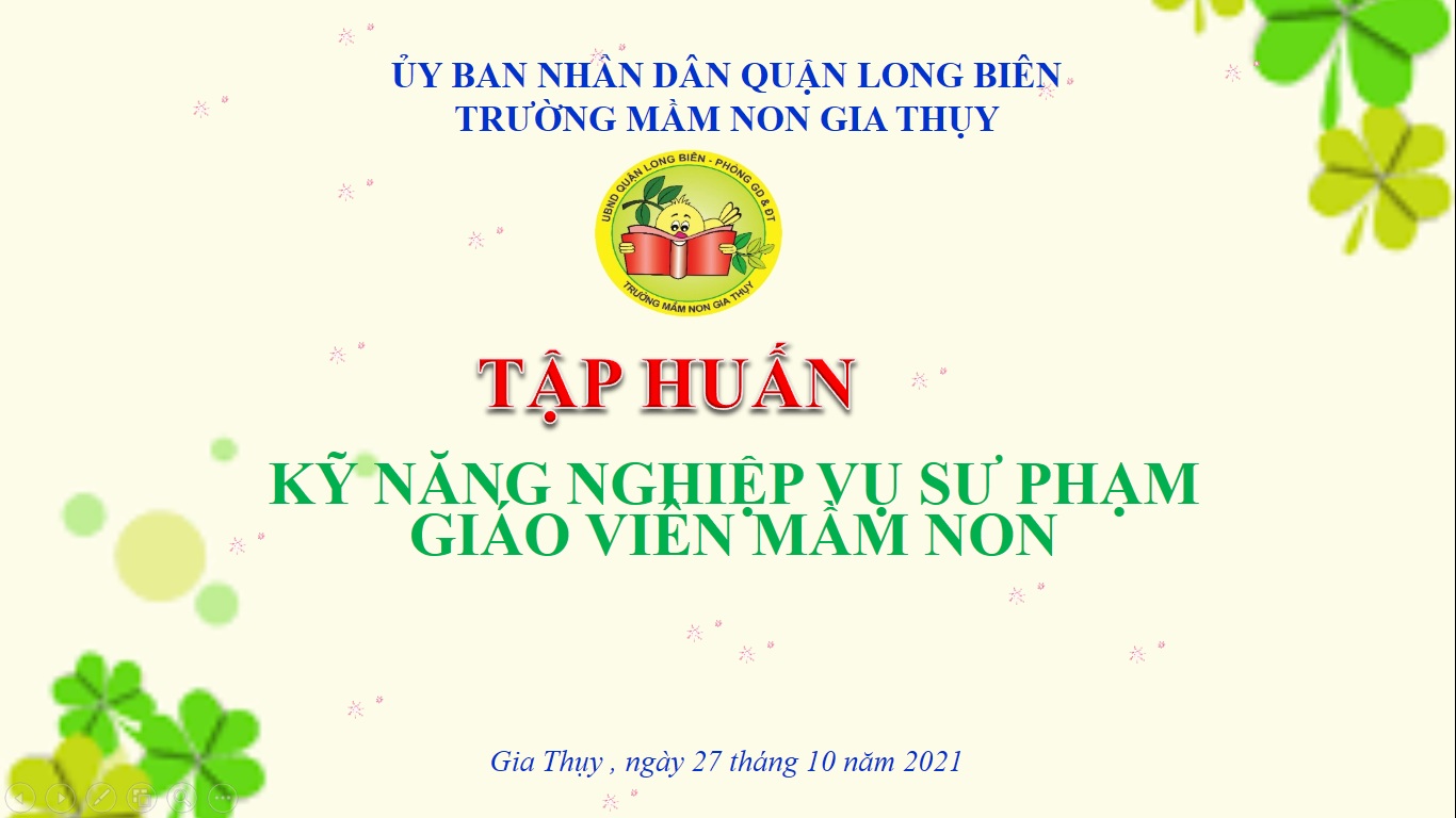 Thực hiện nhiệm vụ năm học 2021-2022 với chủ đề "Xây dựng trường mầm non xanh - an toàn - thân thiện", nhằm nâng cao hơn nữa nghiệp vụ sư phạm cho đội ngũ giáo viên trong nhà trường. Hôm nay ngày 27 tháng 10 năm 2021, Trường mầm non Gia Thụy đã mời đồng chí Nguyễn Hoài Hương - chuyên viên phòng mầm non của Sở GD&ĐT Hà Nội tập huấn về kỹ năng nghề . Mặc dù đang trong thời gian dịch phòng chống bệnh, học sinh chưa được đến trường nhưng với tinh thần ham học hỏi, muốn thay đổi chính mình, có những kỹ năng ứng xử văn minh phù hợp với nghề giáo nên tập thể nhà trường và đồng chí Nguyễn Hoài Hương đã có buổi trao đổi hết sức cởi mở, tâm huyết và hứng thú.