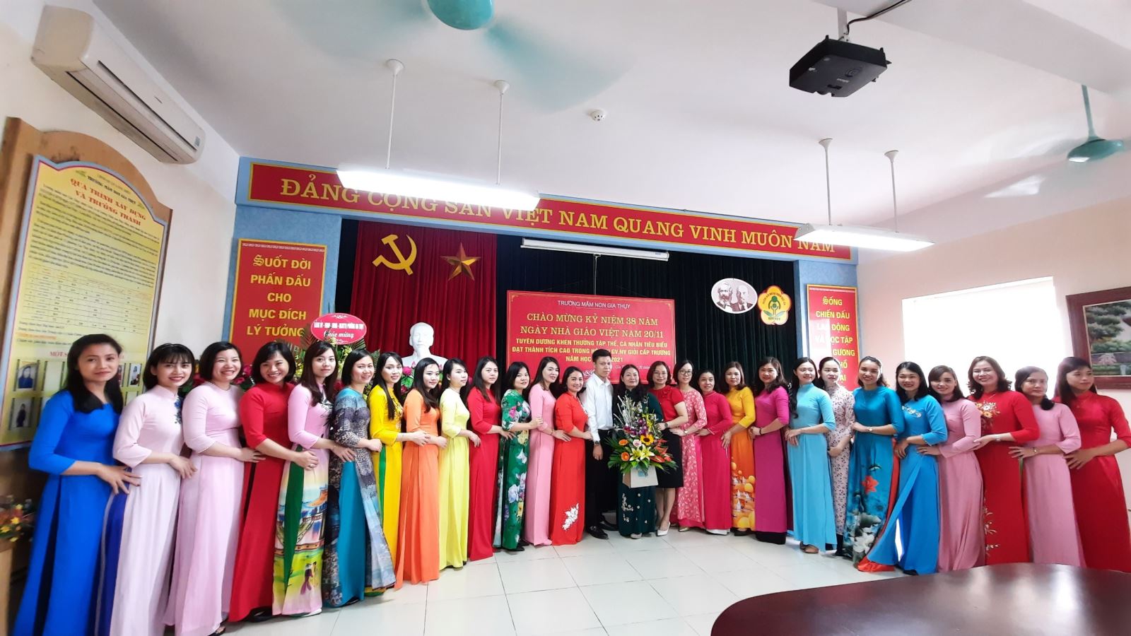 Hòa trong không khí tưng bừng của cả nước chào mừng ngày NGVN, trường MNGT long trọng tổ chức kỷ niệm 38 năm ngày NGVN 20/11/1982 - 20/11/2020, tuyên dương khen thưởng tập thể cá nhân đạt thành tích cao Hội thi GVG - NVG cấp trường năm học 2020-2021.