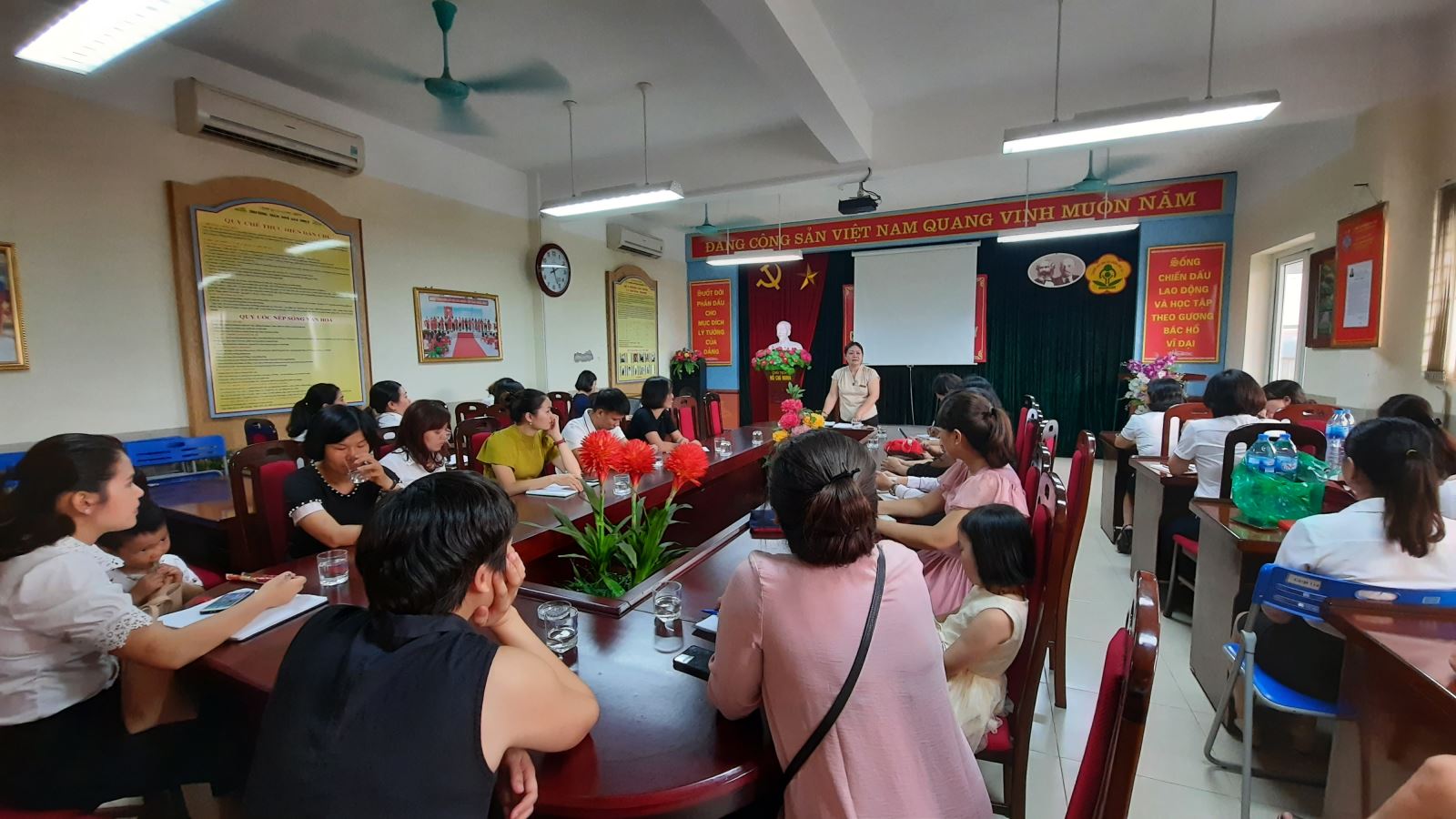 đ/c Lưu Thị Nhận BTCB, Hiệu trưởng chủ trì cuộc họp.